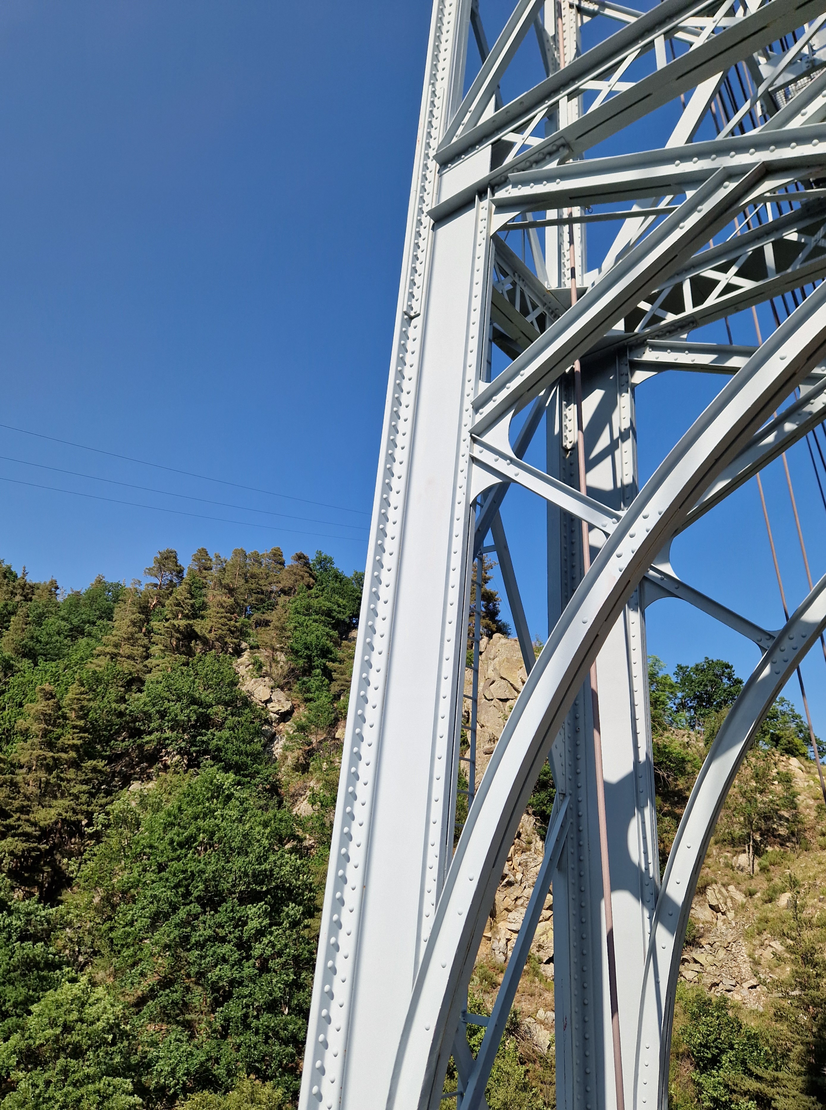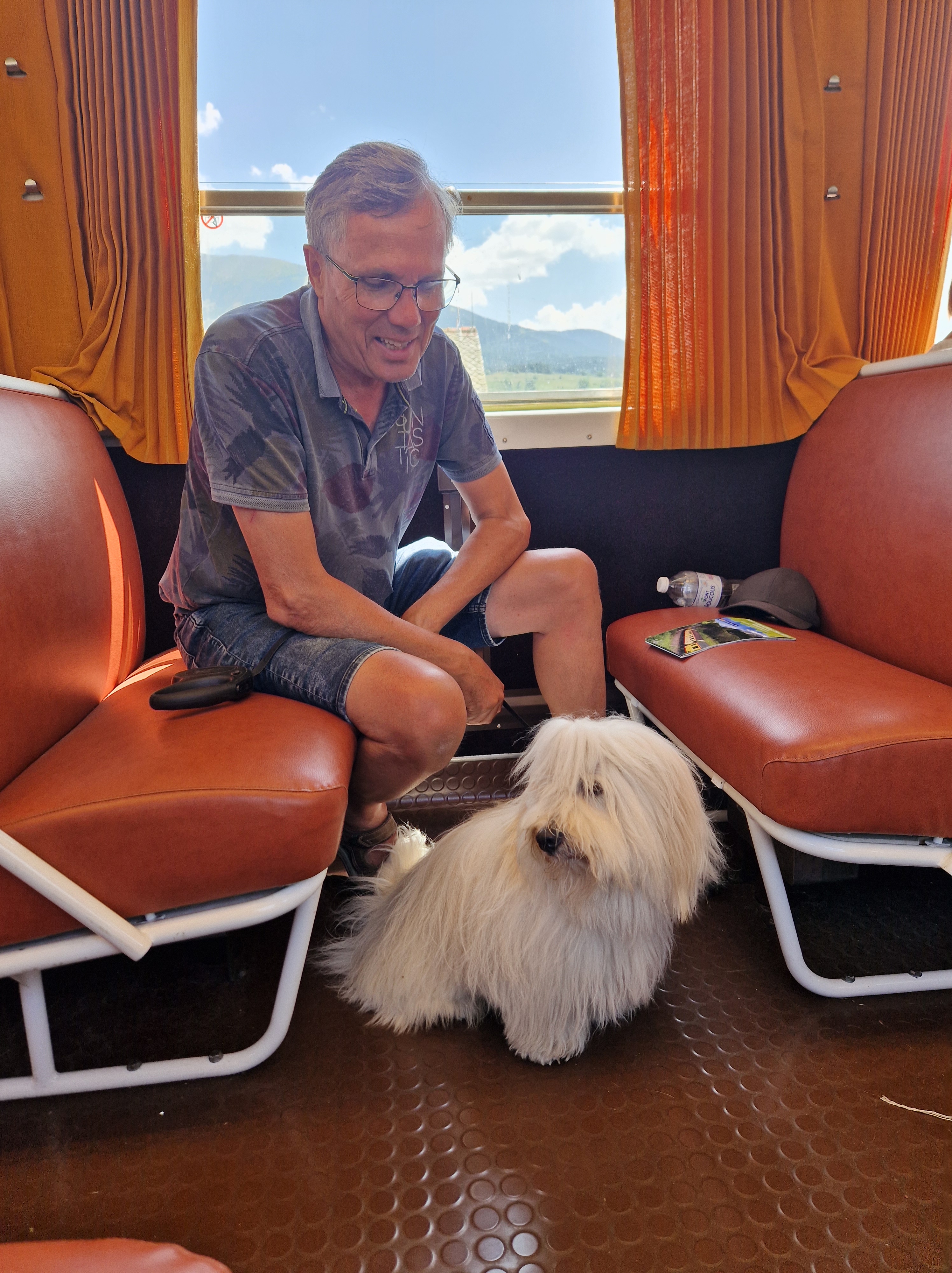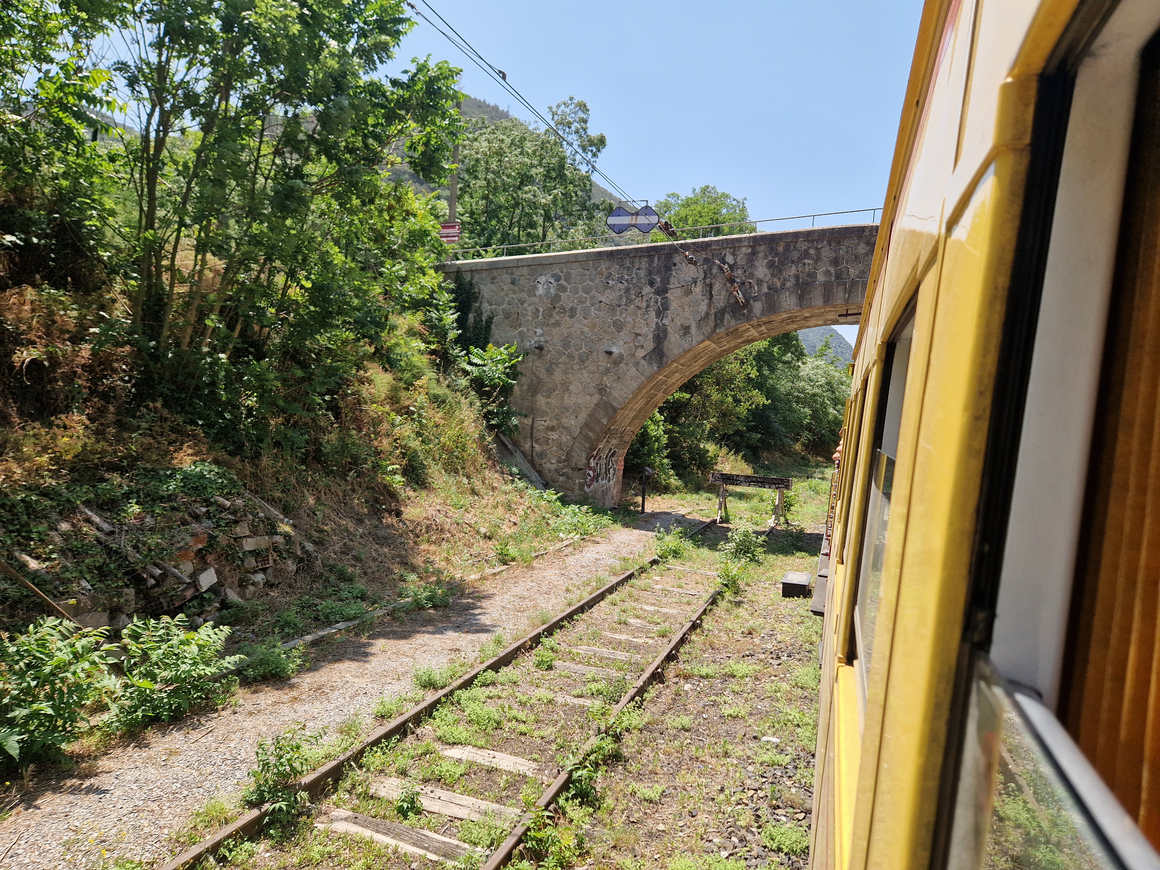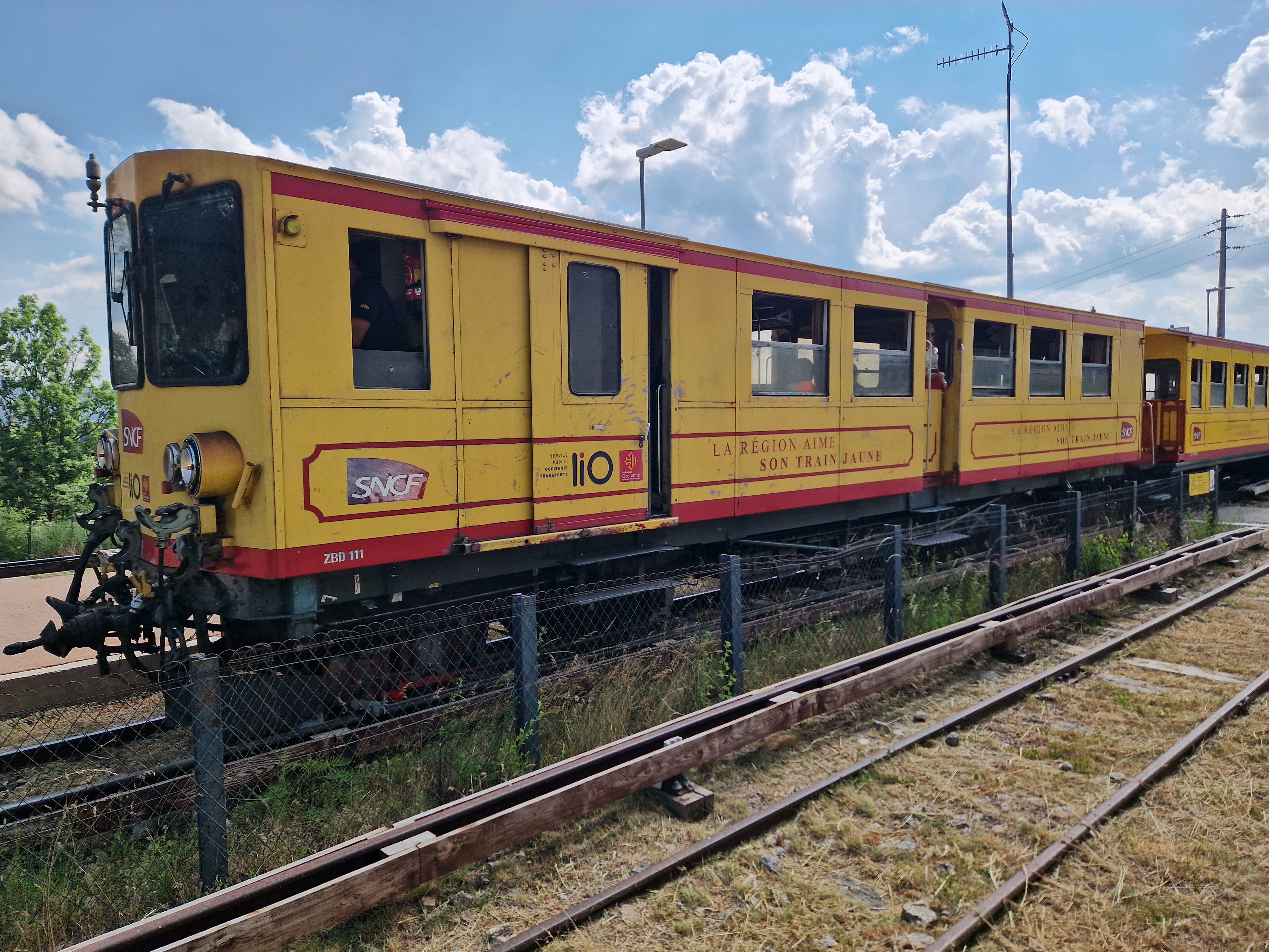 De heenrit zitten we binnen. De trein zit vol Fransen, wij zijn de enige buitenlanders. Tunnels en bruggen worden door een jongetje dat met Papy et Mamie op pad is en met zijn hoofd uit het raam hangt, luidkeels aangekondigd. “Tunnèl, tunnèl! Pont! Pont!” Zijn guitig smoeltje met roetvegen op de wangen glundert van pret. Op onmogelijk kleine stationnetjes stoppen we af en toe om een tegemoetkomende boemel te laten passeren.