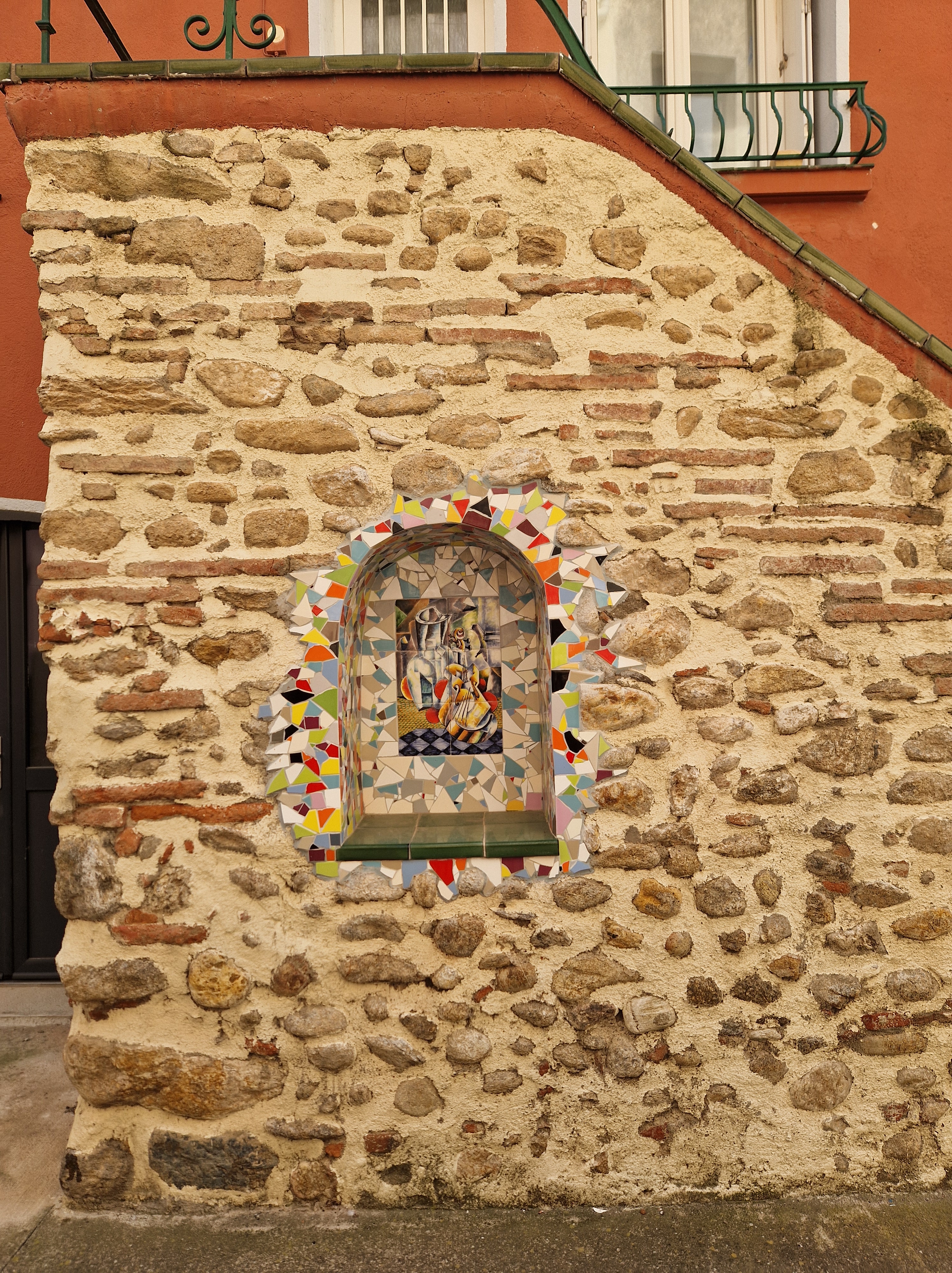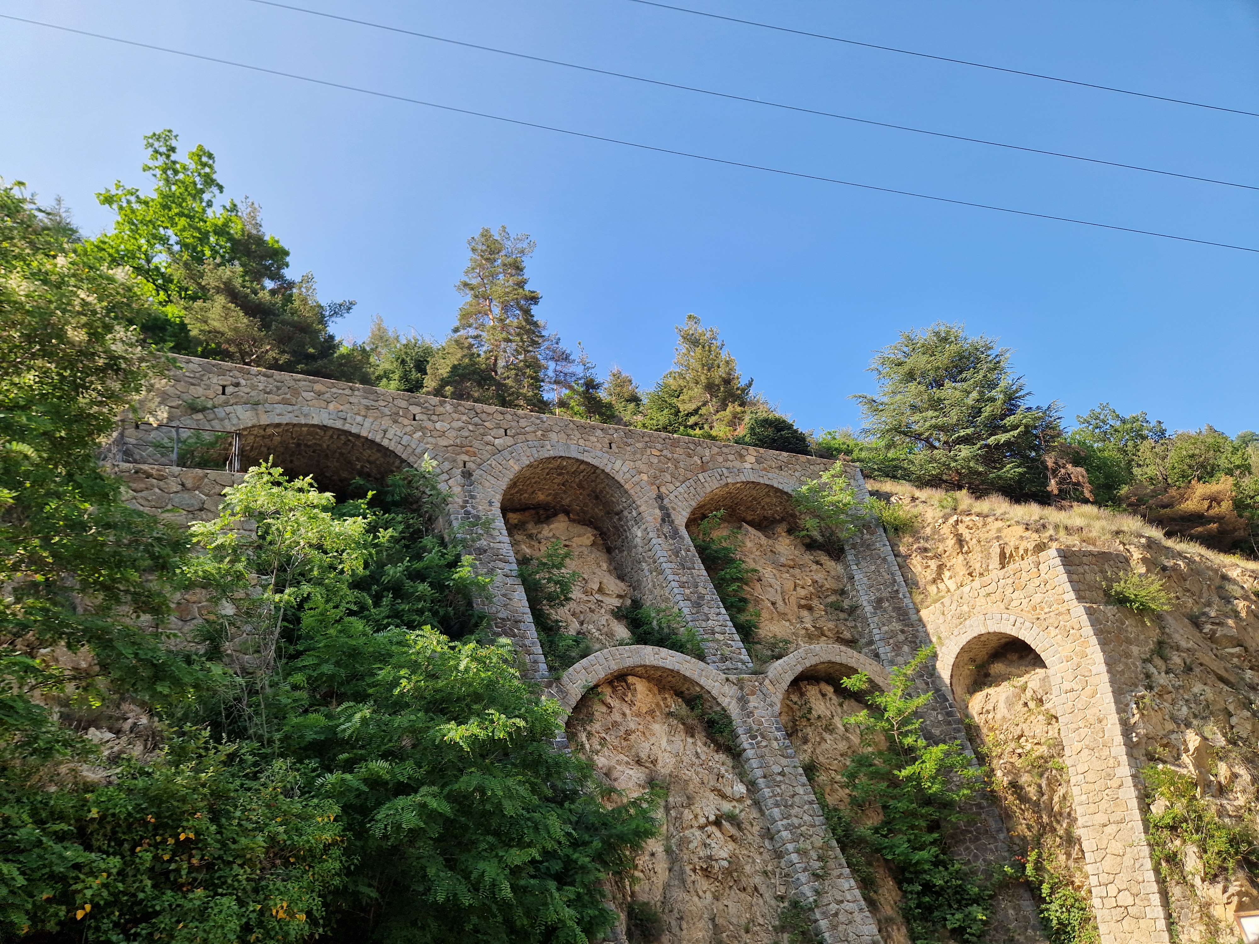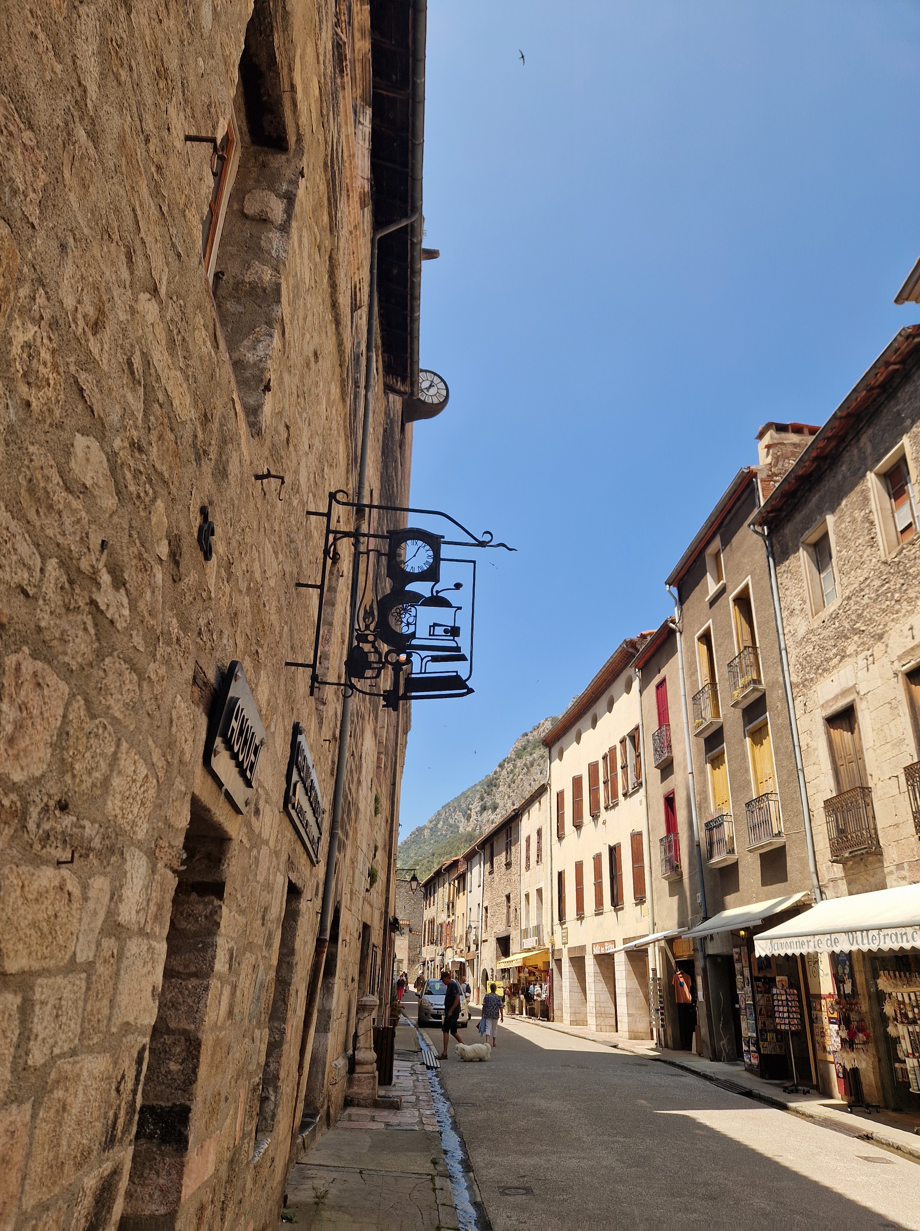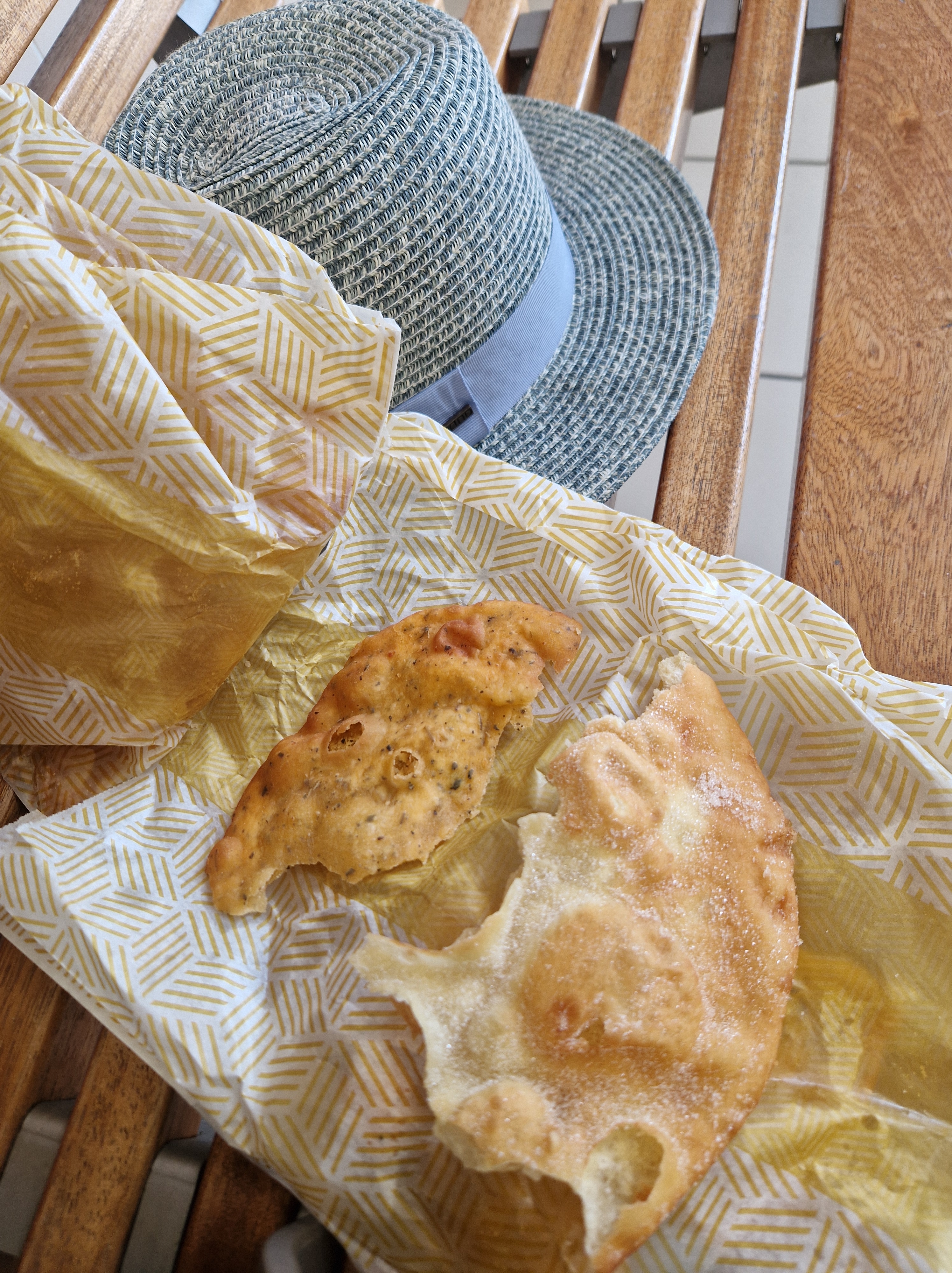 Met de Train Jaune, het gele toeristendieseltje, doen we de volgende dag een retourtje Villefranche-de-Conflent <> Font-Romeu-Odeillo-Via. Zo, da’s een mond vol. De namen klinken toch nèt iets anders dan ‘Naarden-Bussum’ of ‘Purmerend-Overwhere’. In Villefranche hebben we wat tijd over om rond te wandelen. Kopen Bunyettes Catalanes, heerlijke platbroden als vette snacks met tomaat/basilicum of met suiker. We snoepen er de hele middag van.