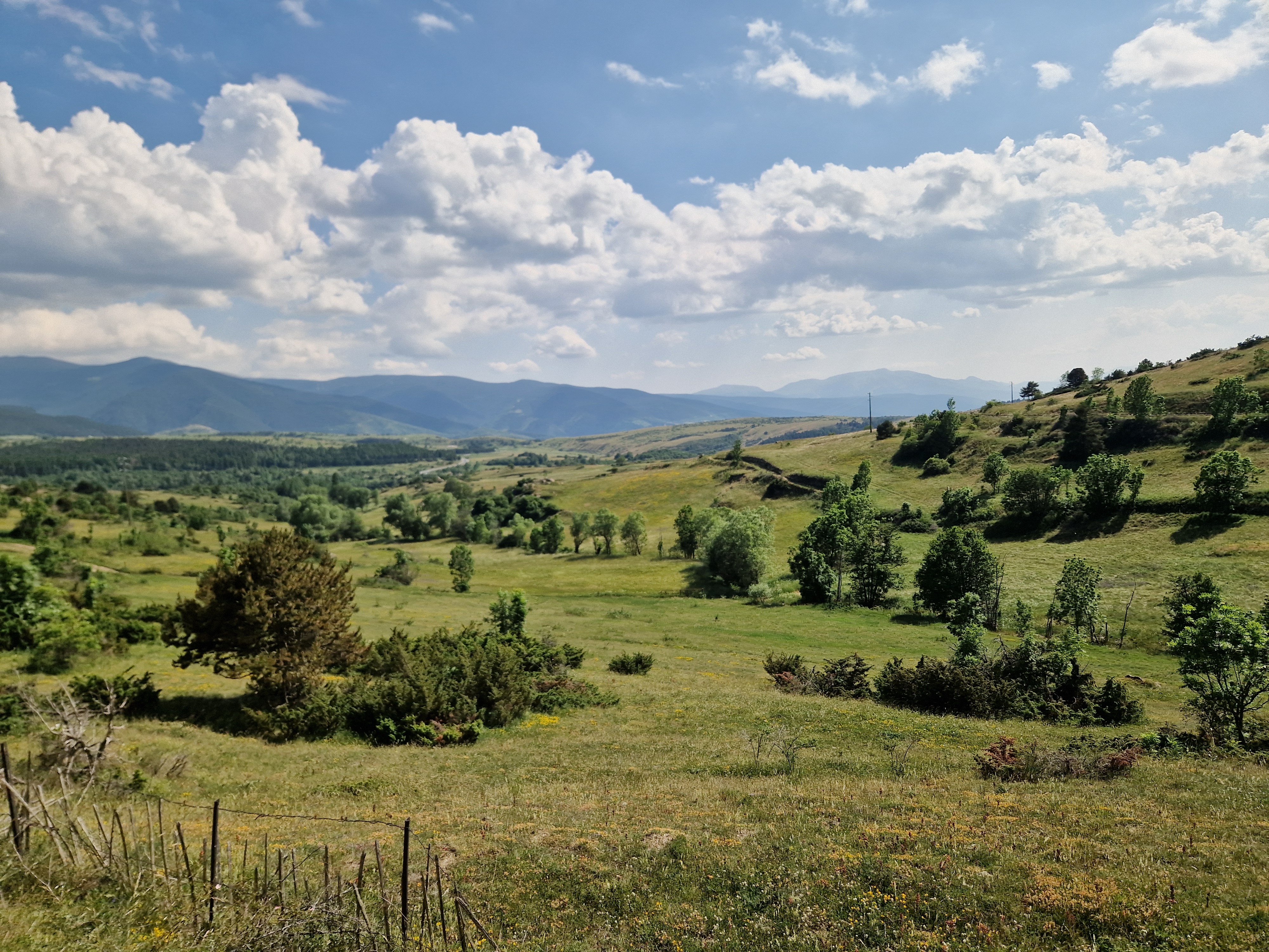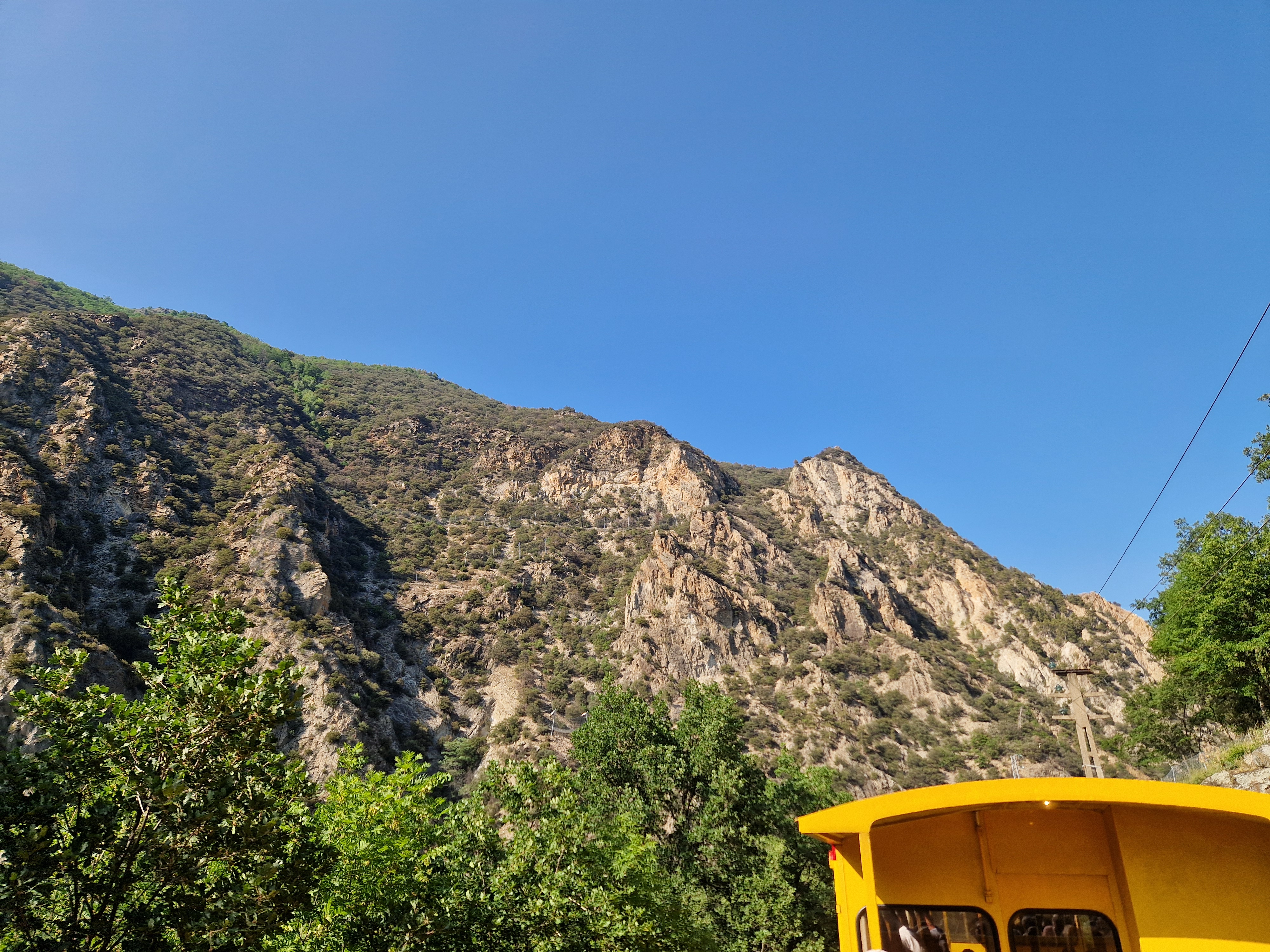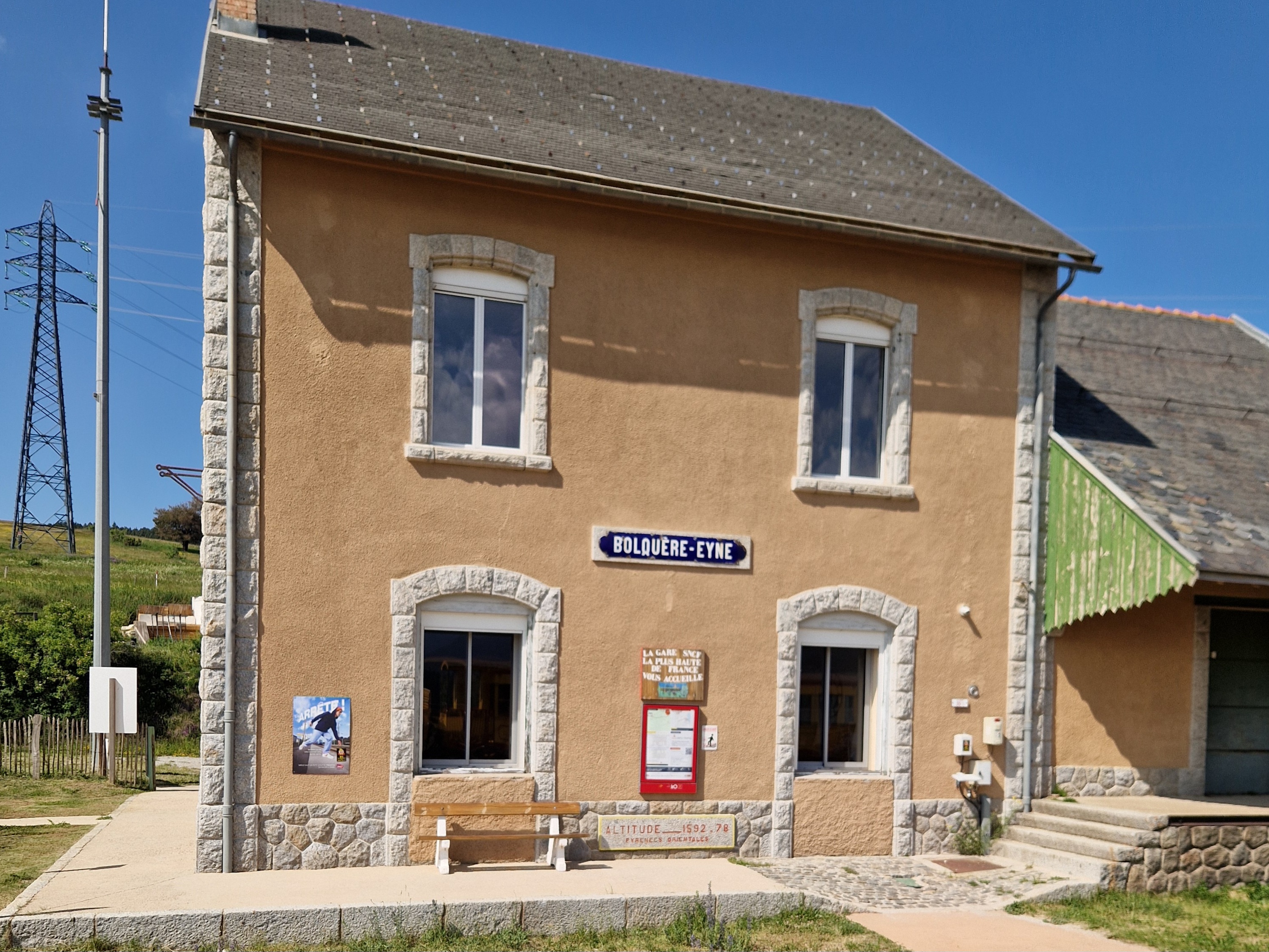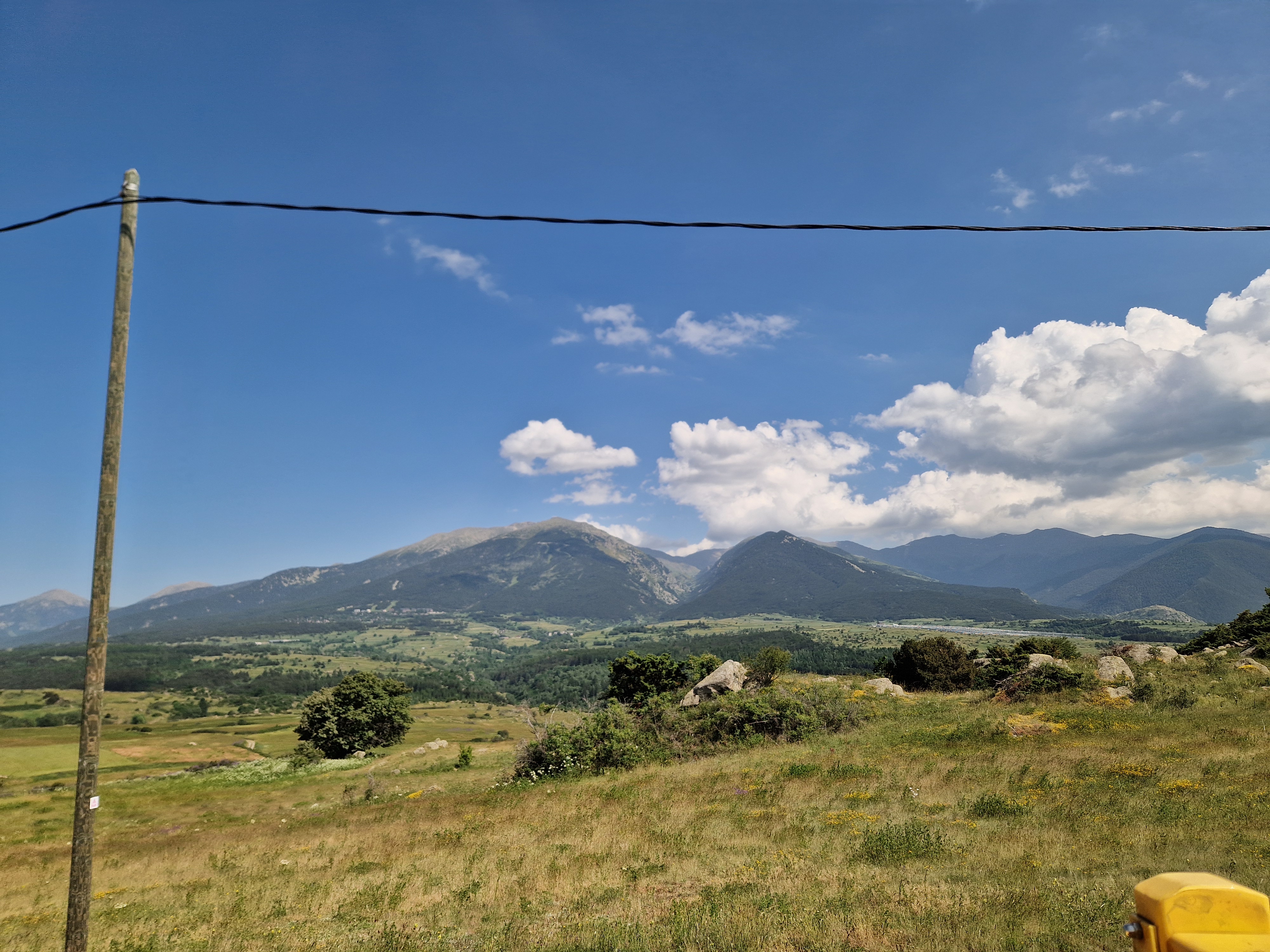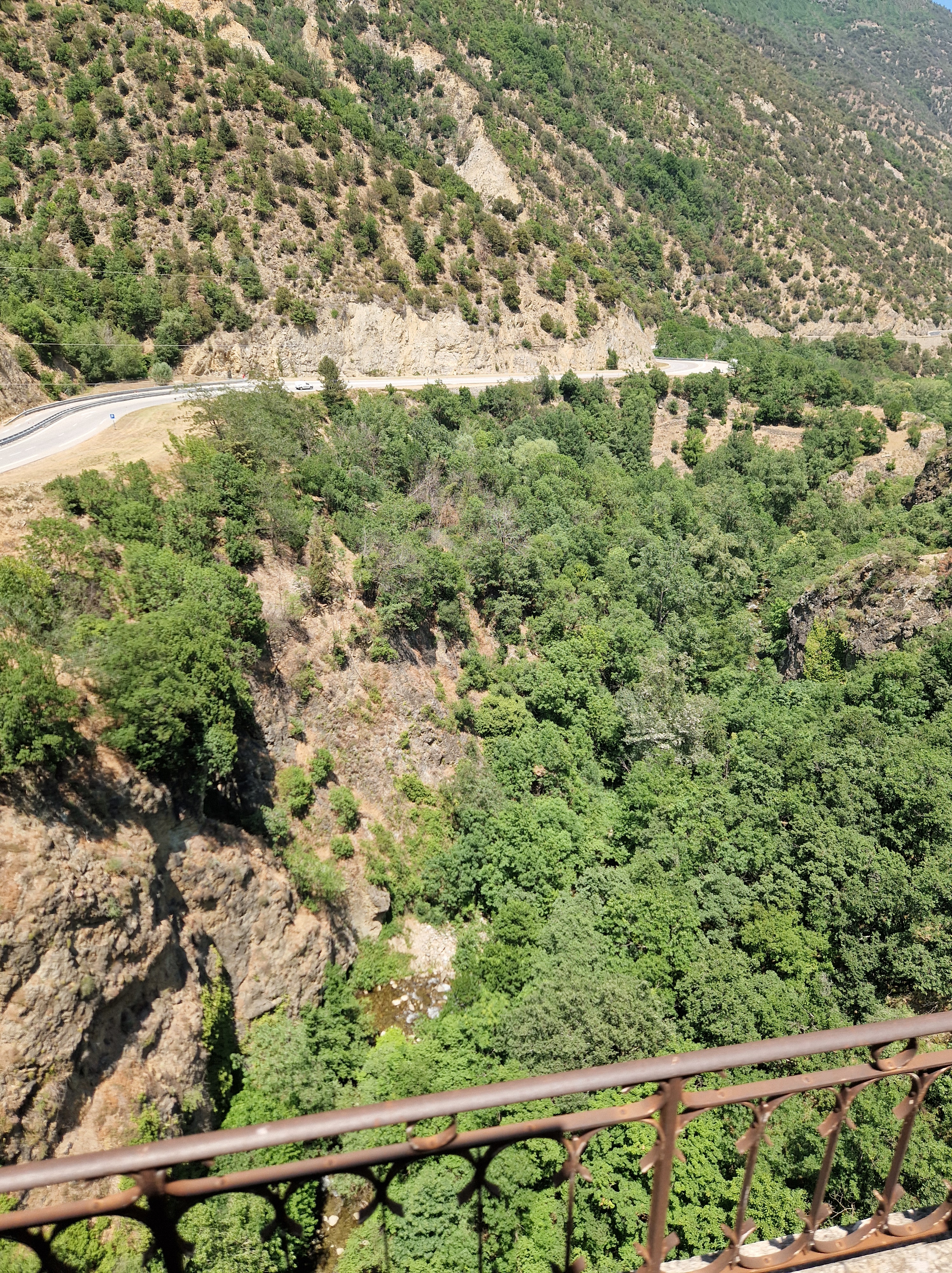 Eenmaal aangekomen bij Font Romeu op ruim 1500 meter hebben we een uurtje rust om frisse lucht te snuiven. Heerlijk is het hierboven, relatief ‘koel’. We lopen richting van de Grand Four Solaire, een grote ‘zonneoven’ van spiegels die iets doen met de zonnewarmte. We zien niet veel van het bouwsel en hebben tijd noch zin om het nader te onderzoeken. Op de terugweg zitten we in het open compartiment, een ander soort oven, waar we levend verbranden maar genieten van de uitzichten.