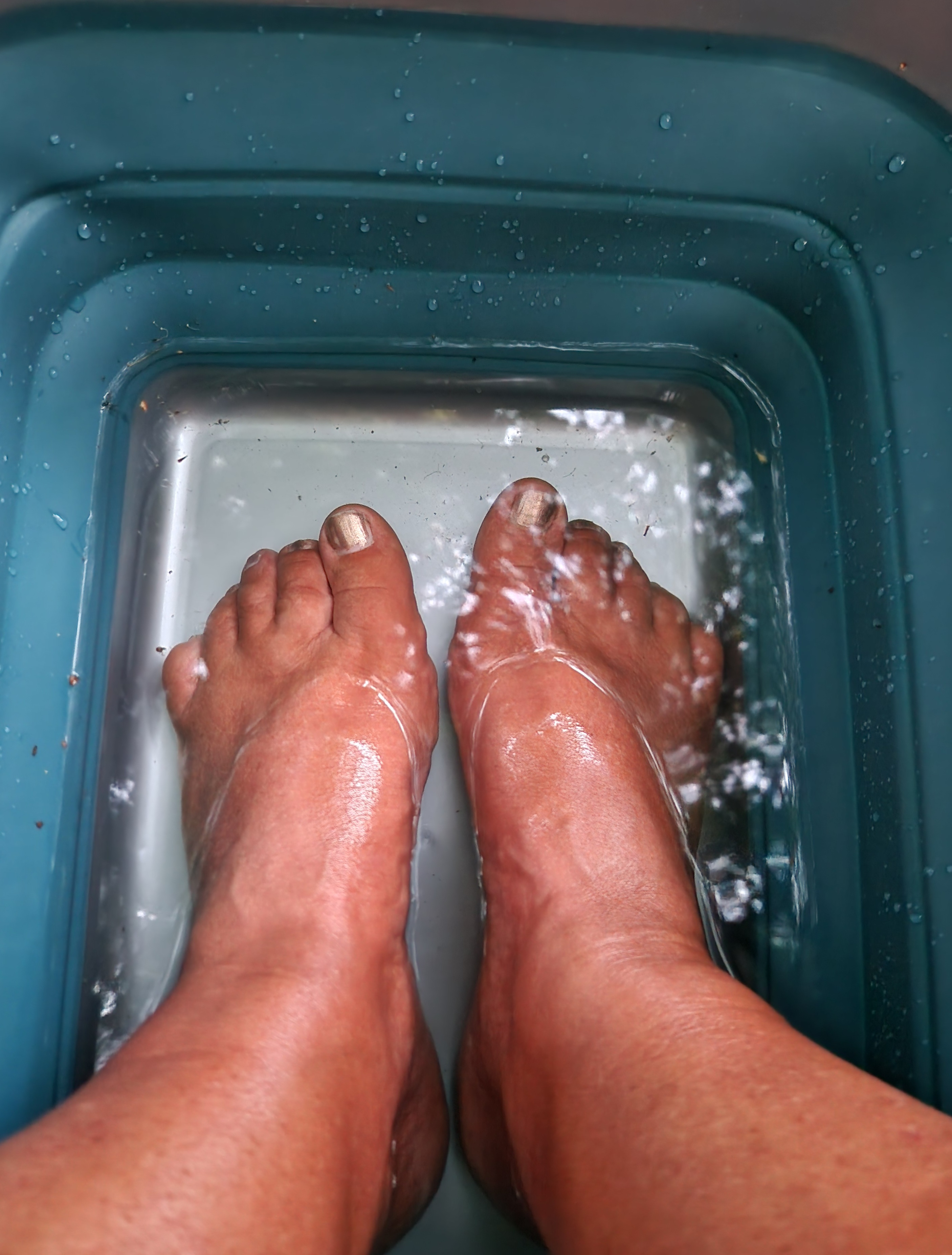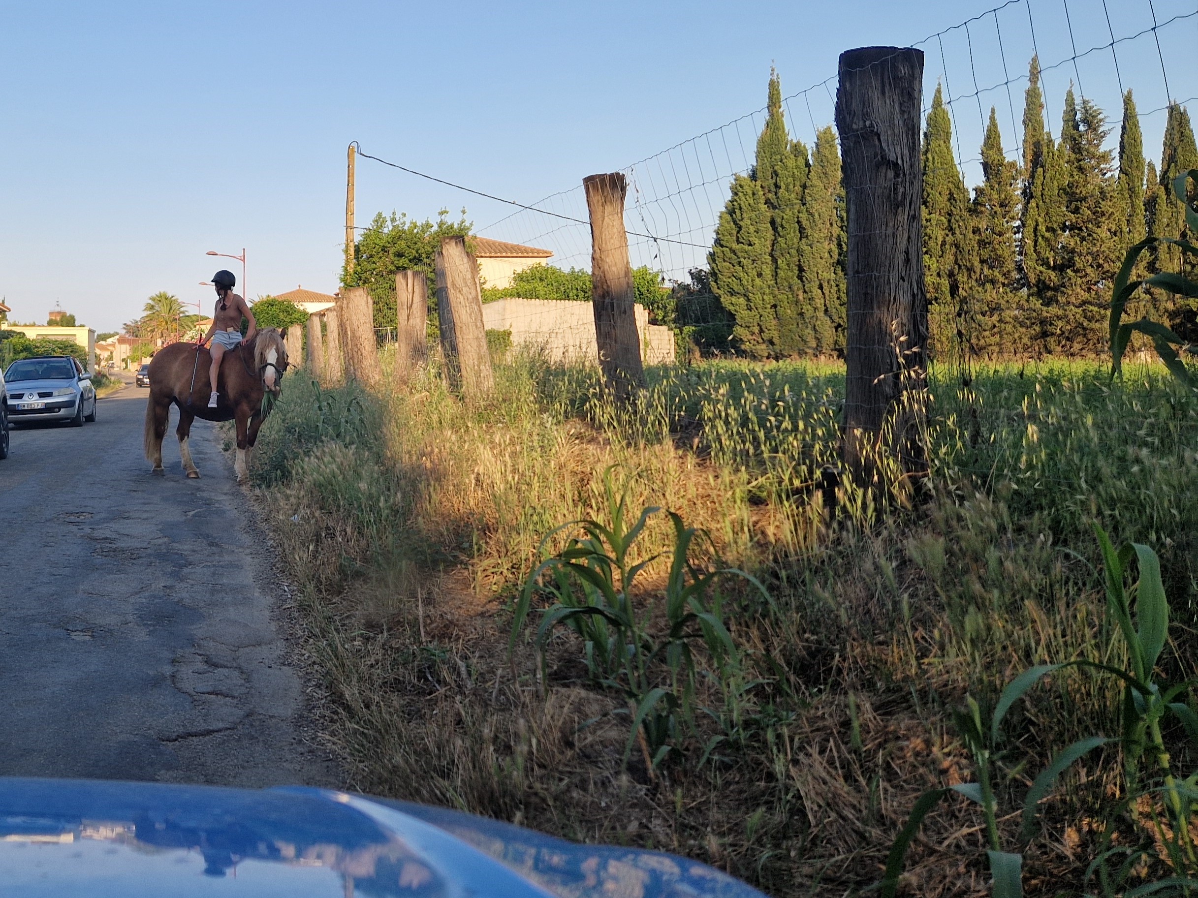 Terugrijdend naar Palau stuiten we op een doodkalm uit de berm grazend paard. Bij de tent probeer ik af te koelen met mijn hoeven in een koudwaterbad, ik kóók! Daar zitten we dan met onze truien, vesten, dikke sokken en elektrische dekens… Een ventilator was handiger geweest.