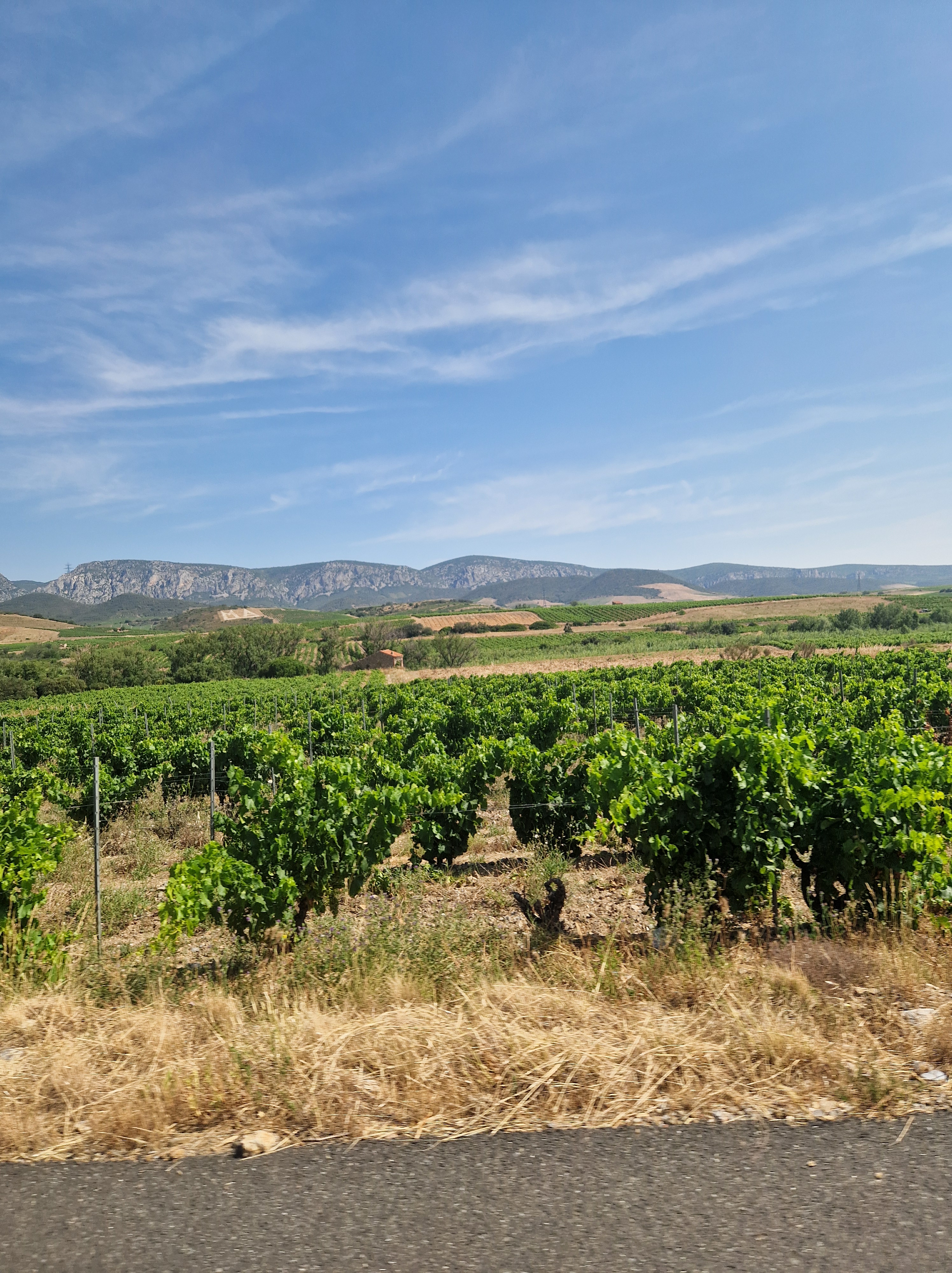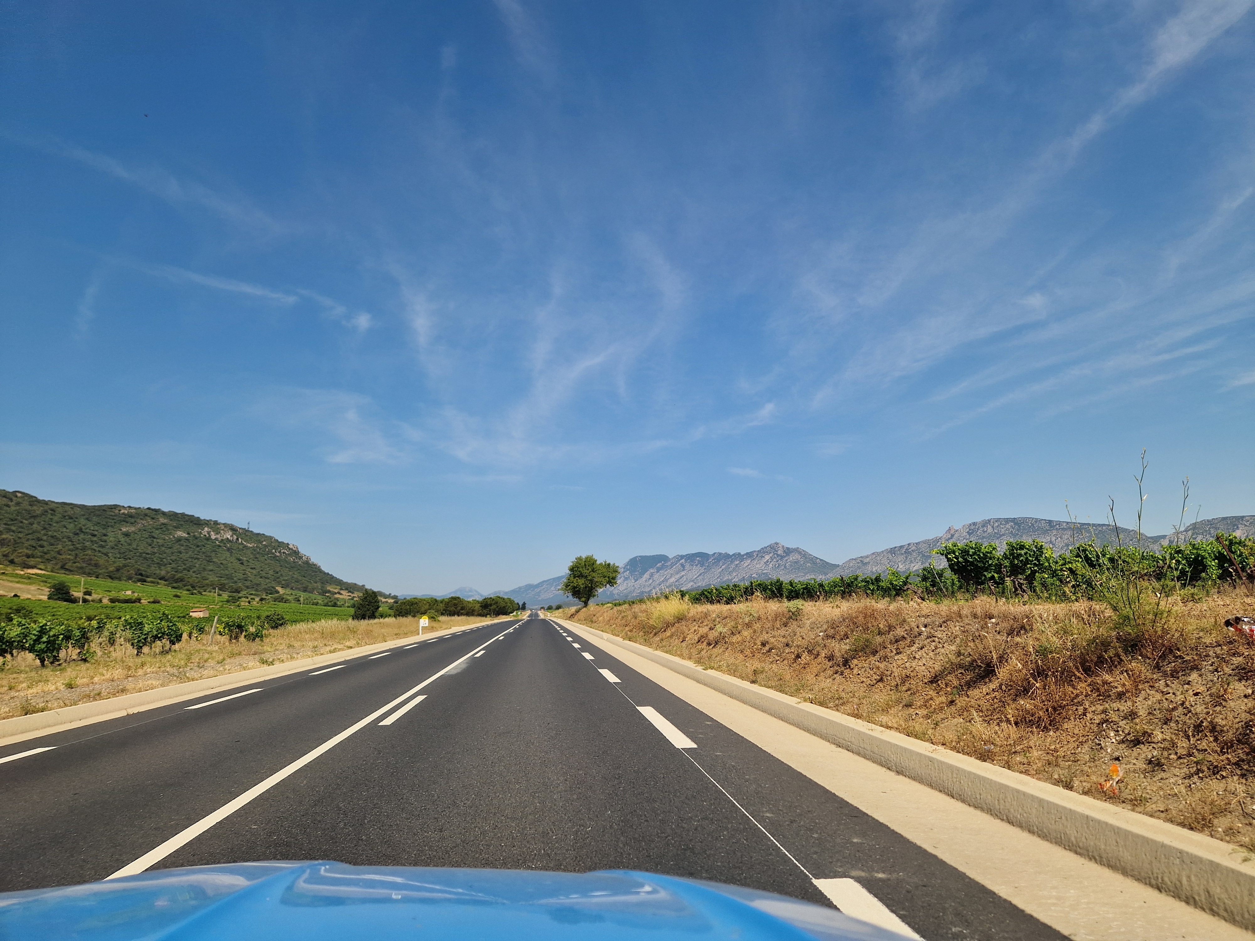 Als we na afloop tussen de wijngaarden van Mas Amiel door kronkelen, schrikt de Garmin (ons hoogte- en temperatuur gadgetje) zich helemaal rot. 37°C? Jup, echt 37°C. De cigales lachen iedereen uit vanuit hun koele schaduwplekje in de bomen.