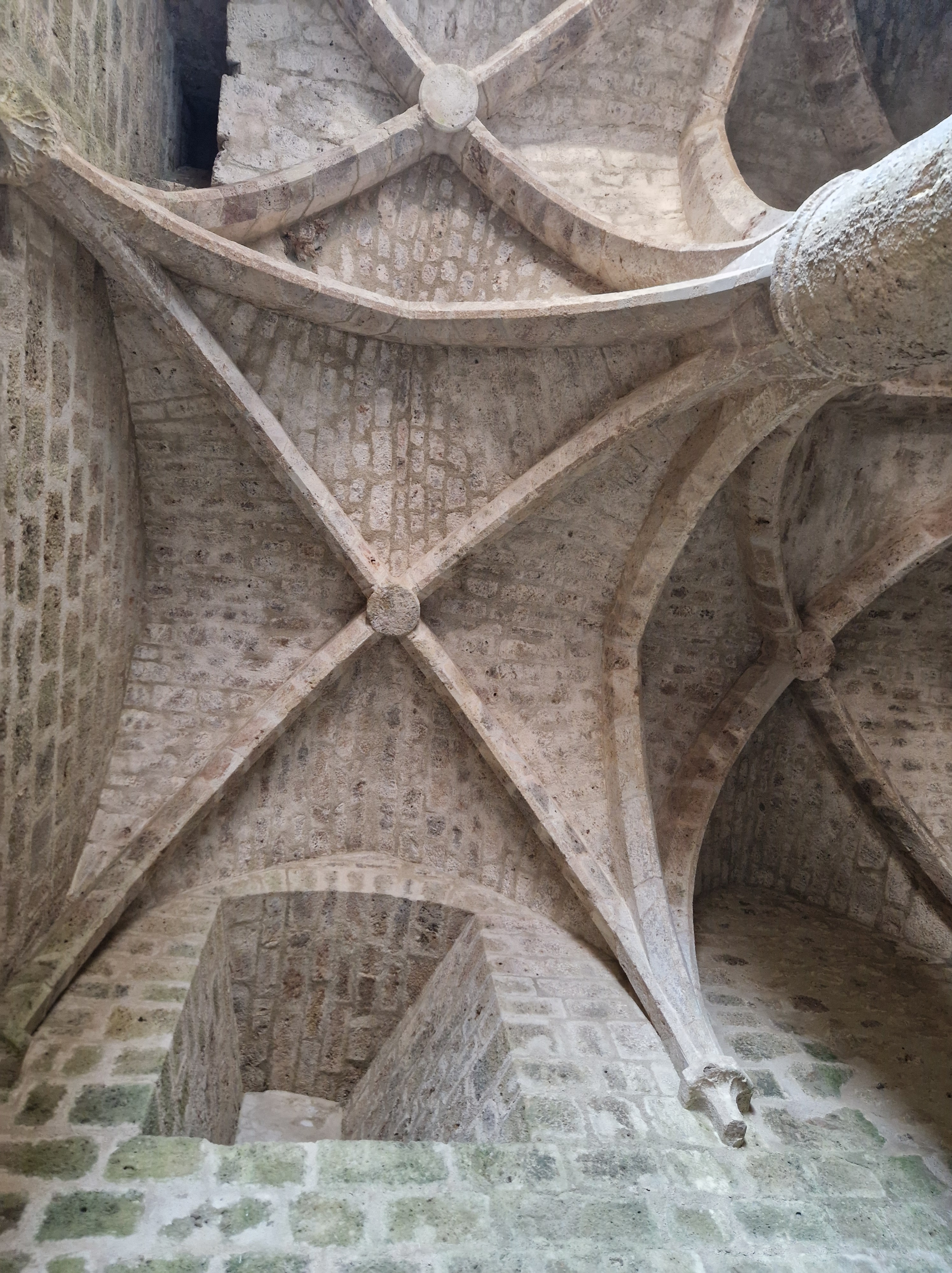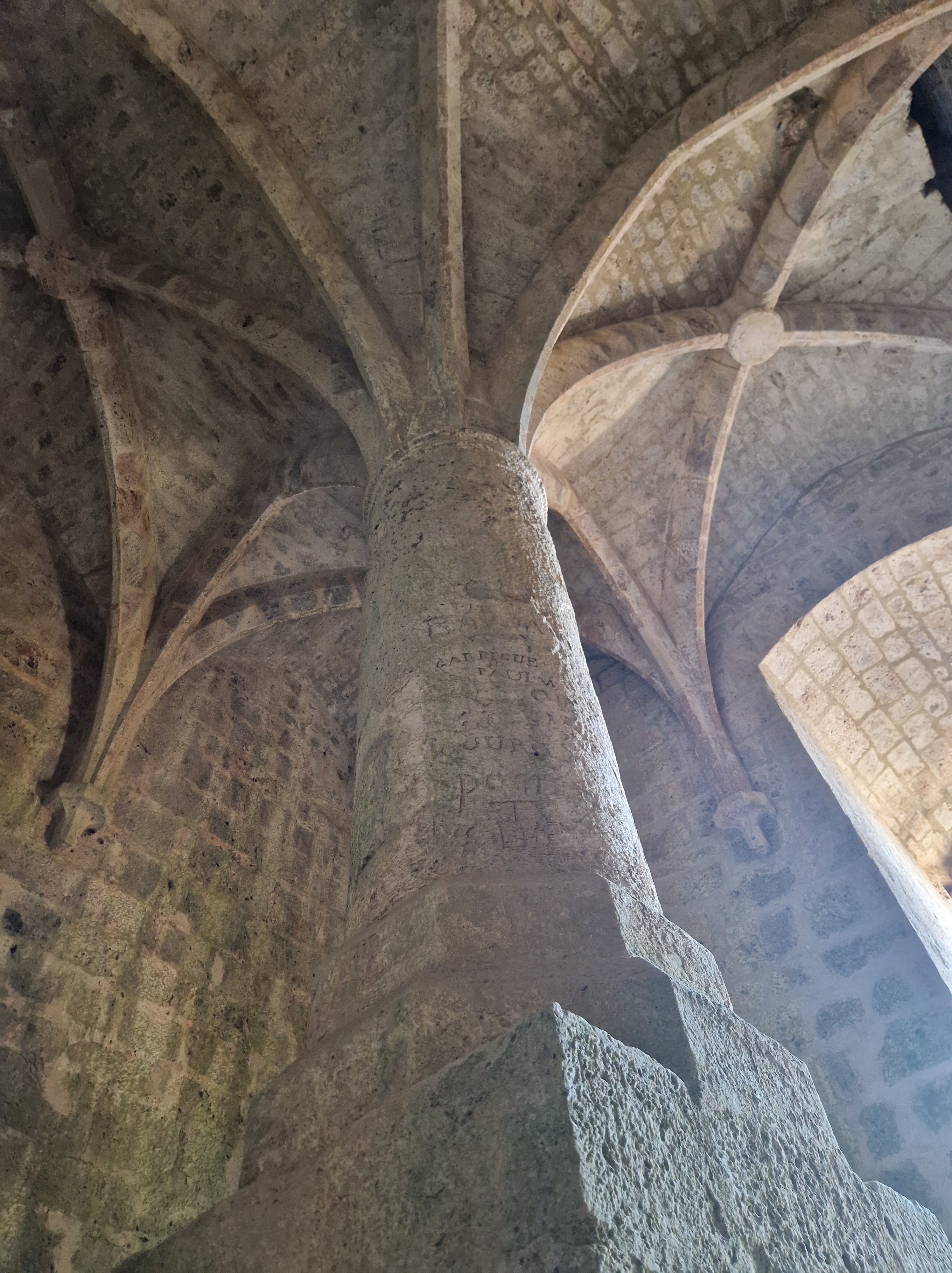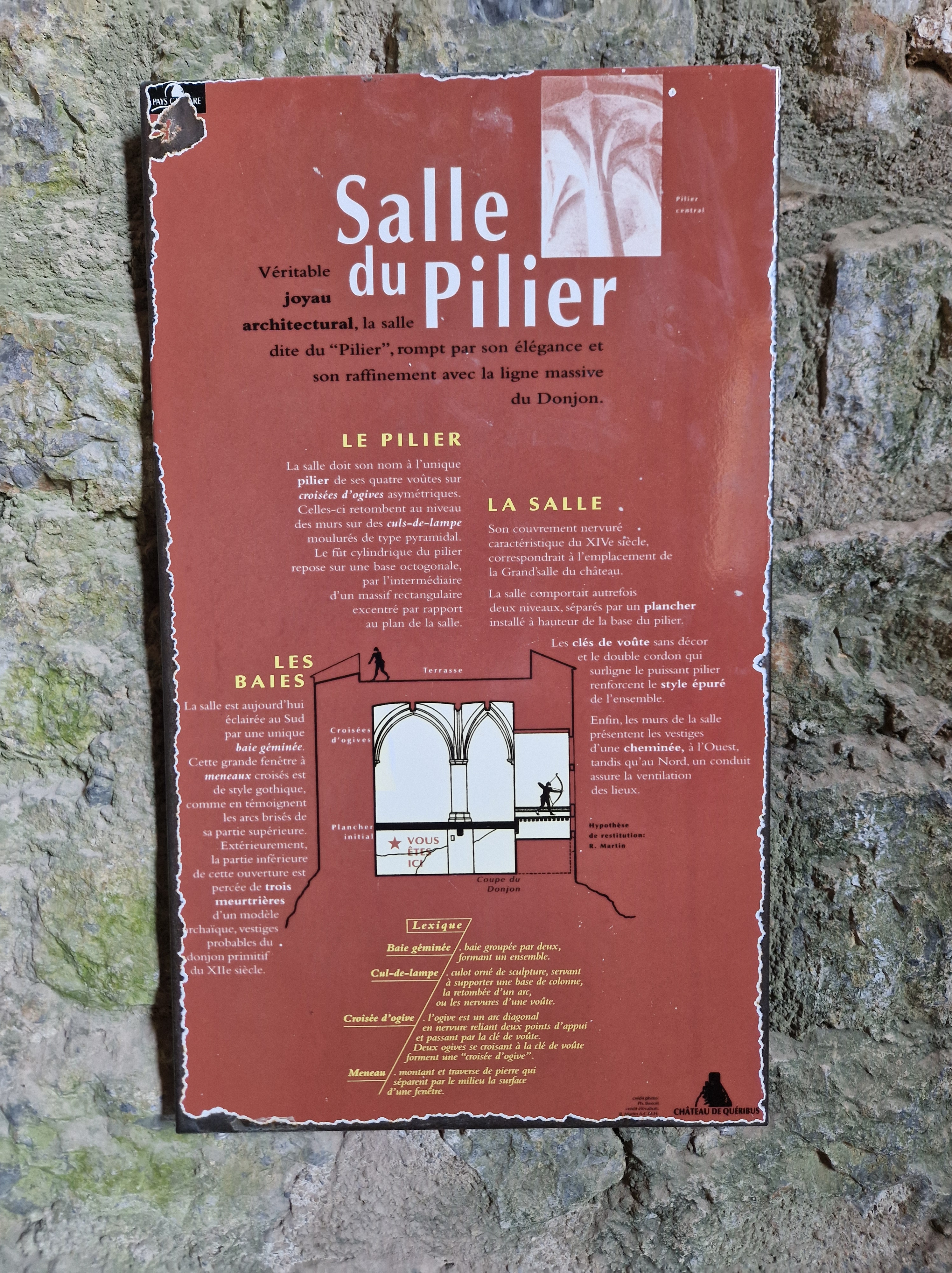 Ik trek mijn wandelschoenen aan: ik zie dat paadje, dat ga ik vanzelangzalzeleven niet op mijn teenslippers redden. Zeker niet in deze bloedhitte. Mijn god, waar beginnen we aan. Hoe zou het komen dat het zo rustig is hier? Haha. Trap na trap, trede voor trede hijs ik mezelf langs de muurtjes en de touwleuning naar boven. Omhoog! Omhoog! Kanonnepietje, zulk zweten. Leve mijn hoed! Ook ik kom er, met een wenteltrap tot bovenop de donjon waar een vriendelijke mijnheer een foto ter bewijs van ons maakt.
