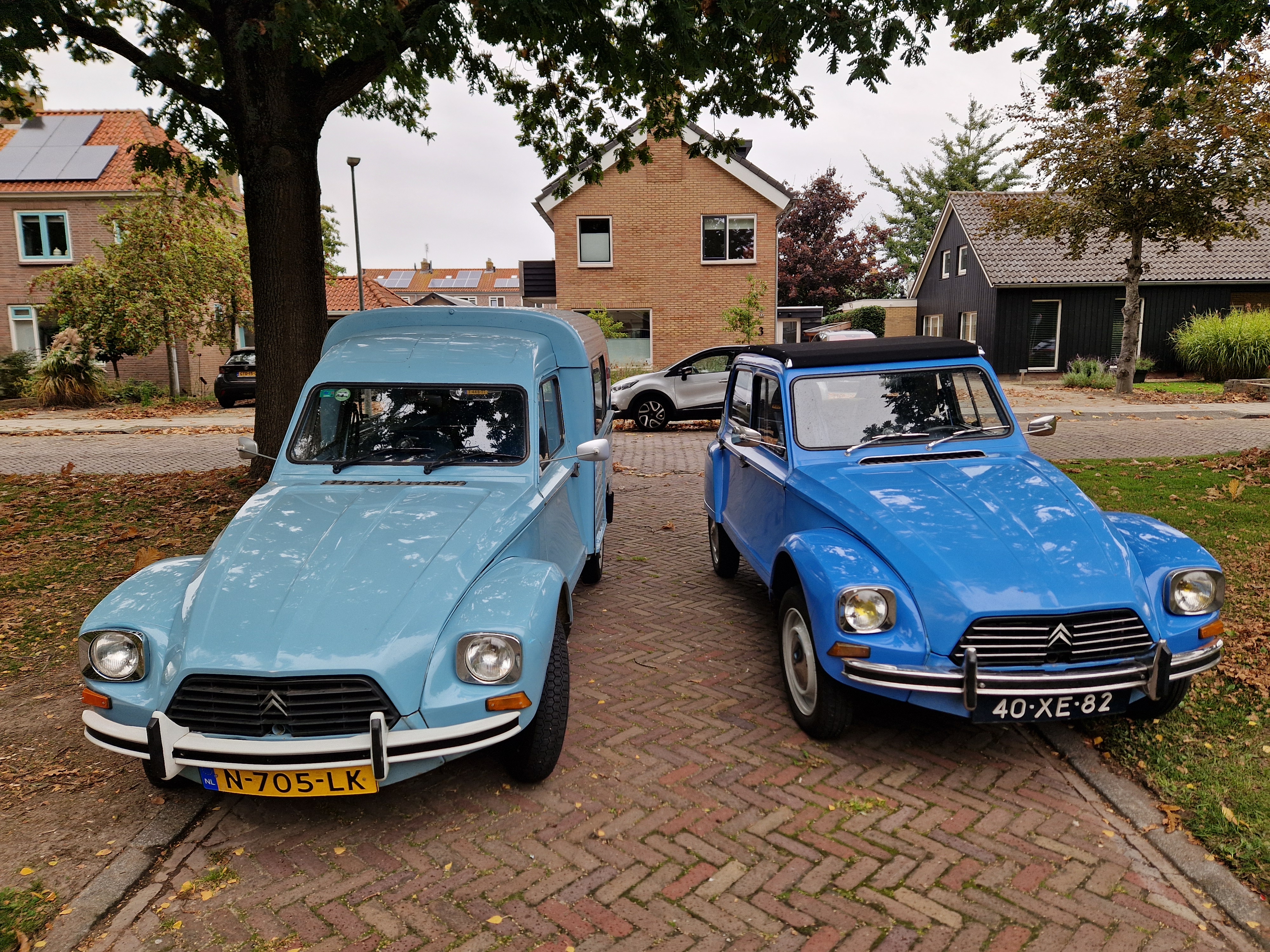 We hebben mazzel, de auto mag tijdens onze vakantie tussen de stellingen bij de Eendengarage blijven staan. En de eerste de beste vrijdagmiddag dat we thuis zijn, zetten we koers naar Wormer. Likkebaardend kijken we in de snoepwinkel van Sander Aalderink rond, wat een enige auto’s staan hier. De leukste staan buiten: de Aca en onze eigen Dyane.