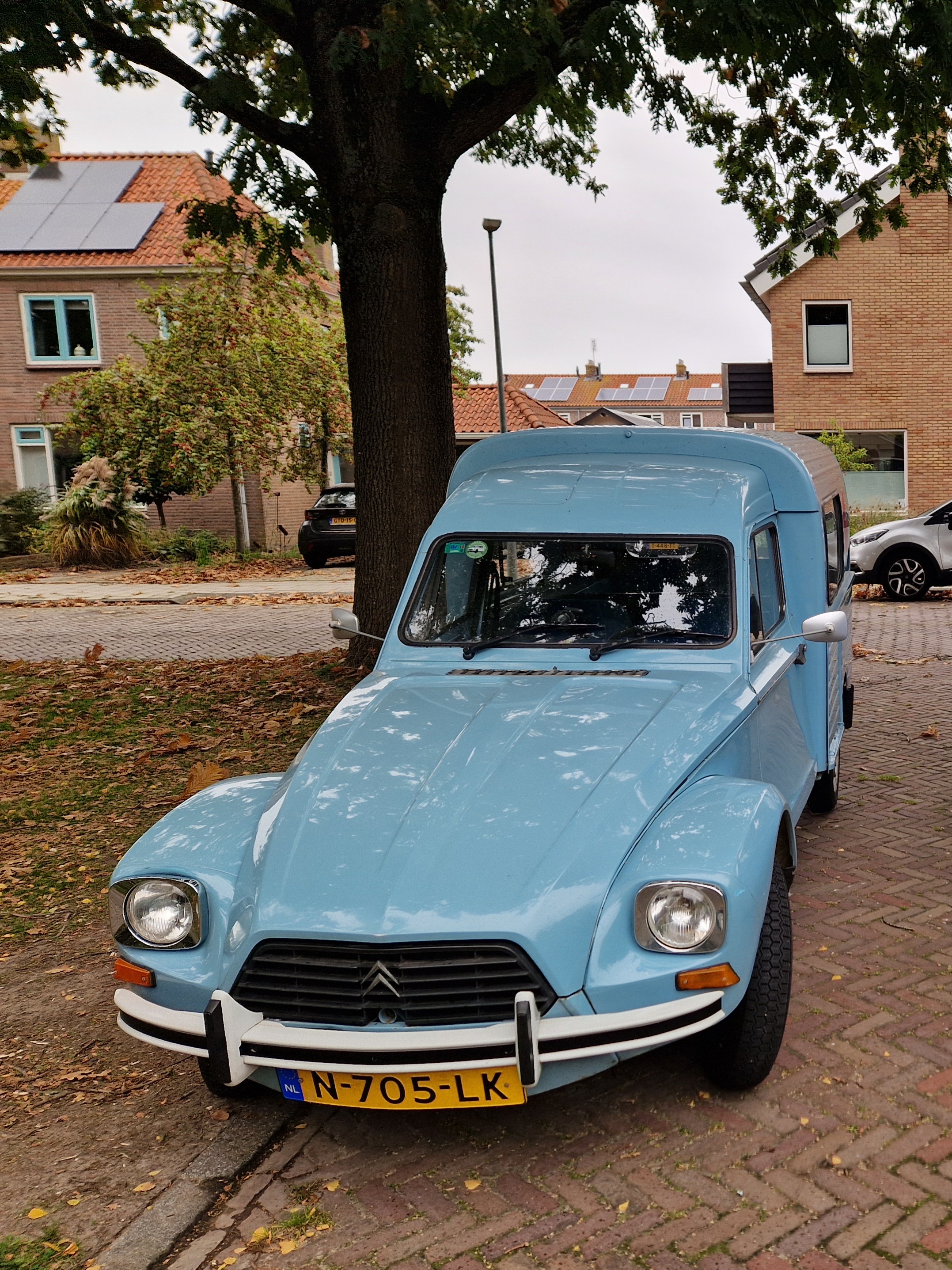 Het op naam overzetten kan ter plaatse en is in mum van tijd gebeurd. Daarna maak ik samen met Tien een proefritje. Bloednerveus ben ik en Tien zit met kromme tenen naast me als ik het stuur heb overgenomen. Heel begrijpelijk want het is alweer een poosje geleden dat ik in de Dyane reed. Ze geeft me een boel tips, die ik op de terugrit kronkelend door Noord-Holland hardop in mezelf herhaal. Achter Gijs aan scheurend langs Knollendam, Driehuizen, door de Schermer, langs Heerhugowaard zweet ik me peentjes. Hard werken, dit vrachtwagentje, al hoef ik hoegenaamd geen kracht te gebruiken. Sturen zonder stuurbekrachtiging is voor mij echter een complete workout. Heelhuids bereiken we het thuishonk.