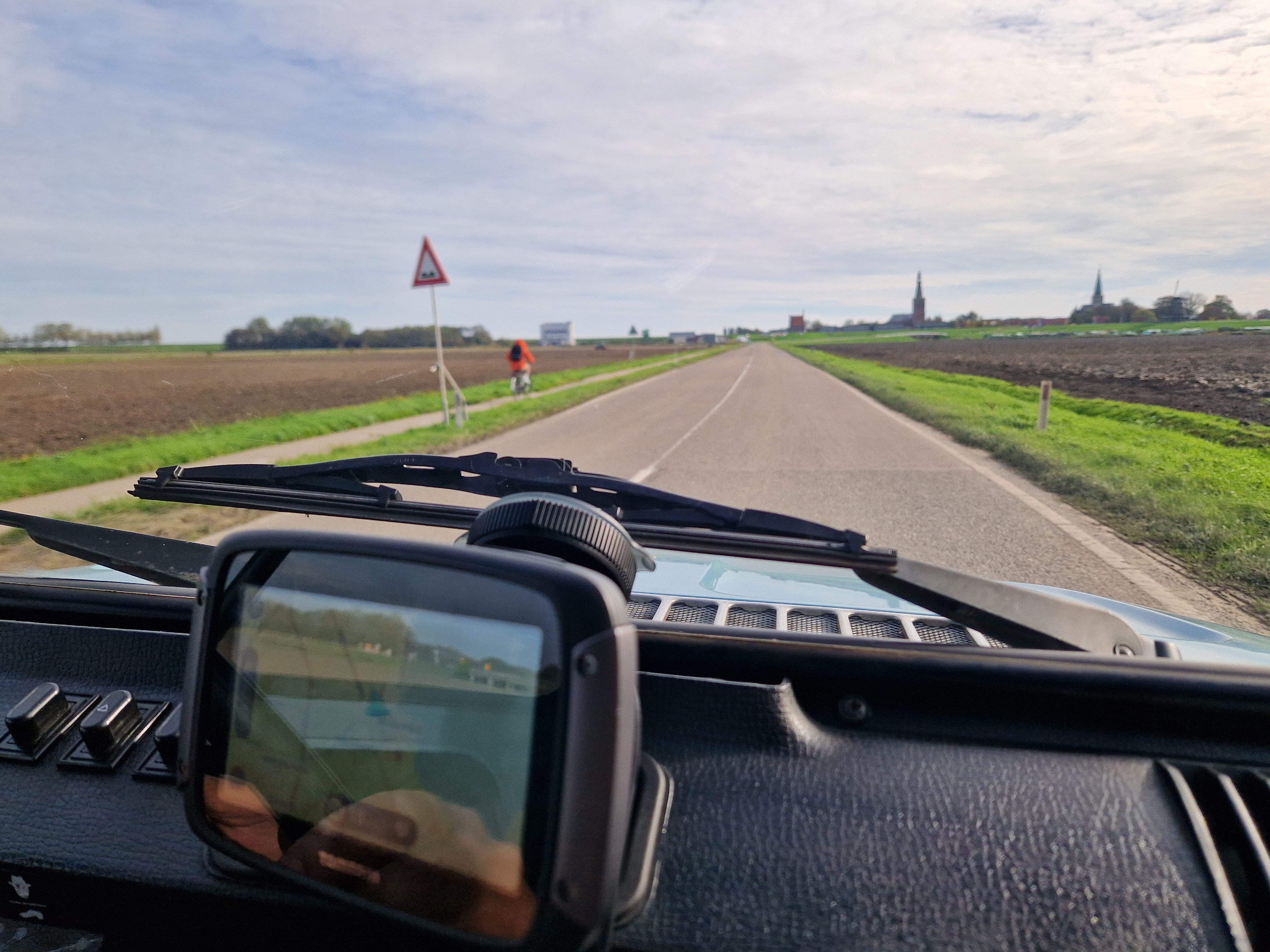 Na een rondje om de auto, klep open, deurtjes open enzovoort wordt het tijd voor een proefrit. Tien neemt plaats achter het stuur, ik ernaast. Starten gaat soepel… té soepel. De grote sprong voorwaarts!
