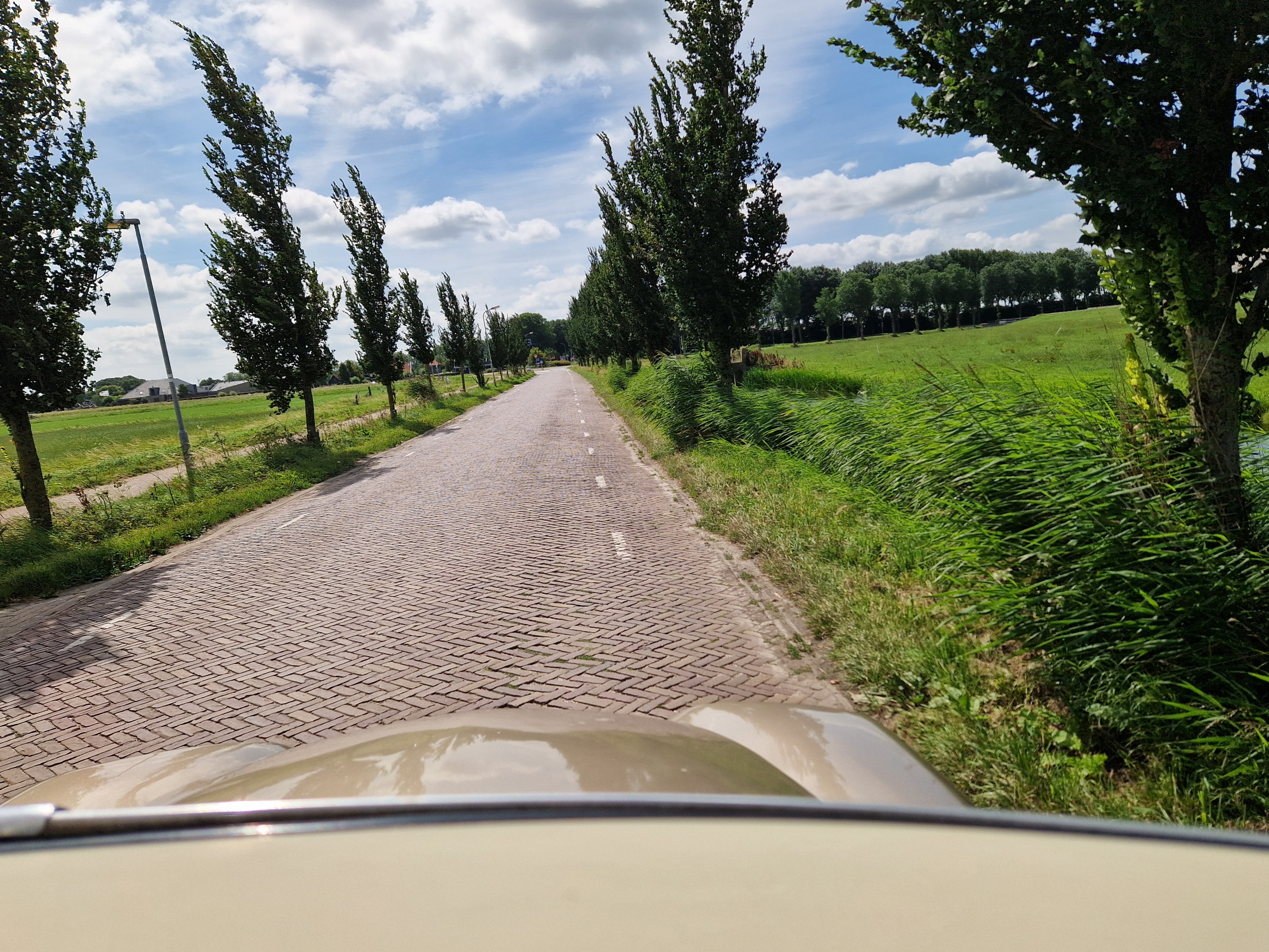 In de dagen die volgen maken we een lijstje wat we allemaal aan de Aca willen doen. Hoewel het lijstje gestaag langer wordt, volgen de eerste groene vinkjes erachter al snel. Anti-roest behandelen heeft prioriteit, ik wil hem zoveel mogelijk als dagelijkse auto gebruiken. Nieuwe vloermatten en antidreunplaten tegen het geluid. Kleine dingen zoals een alarm zodat ik mijn lichten niet vergeet uit te doen. En ja, die “pompeblêdjes” gaan eraf, hoe vrolijk ze ook de wereld in kijken. In dit Noord-Hollandse kassengebied zien ze me aan voor de groenteboer die tomaten langsbrengt…