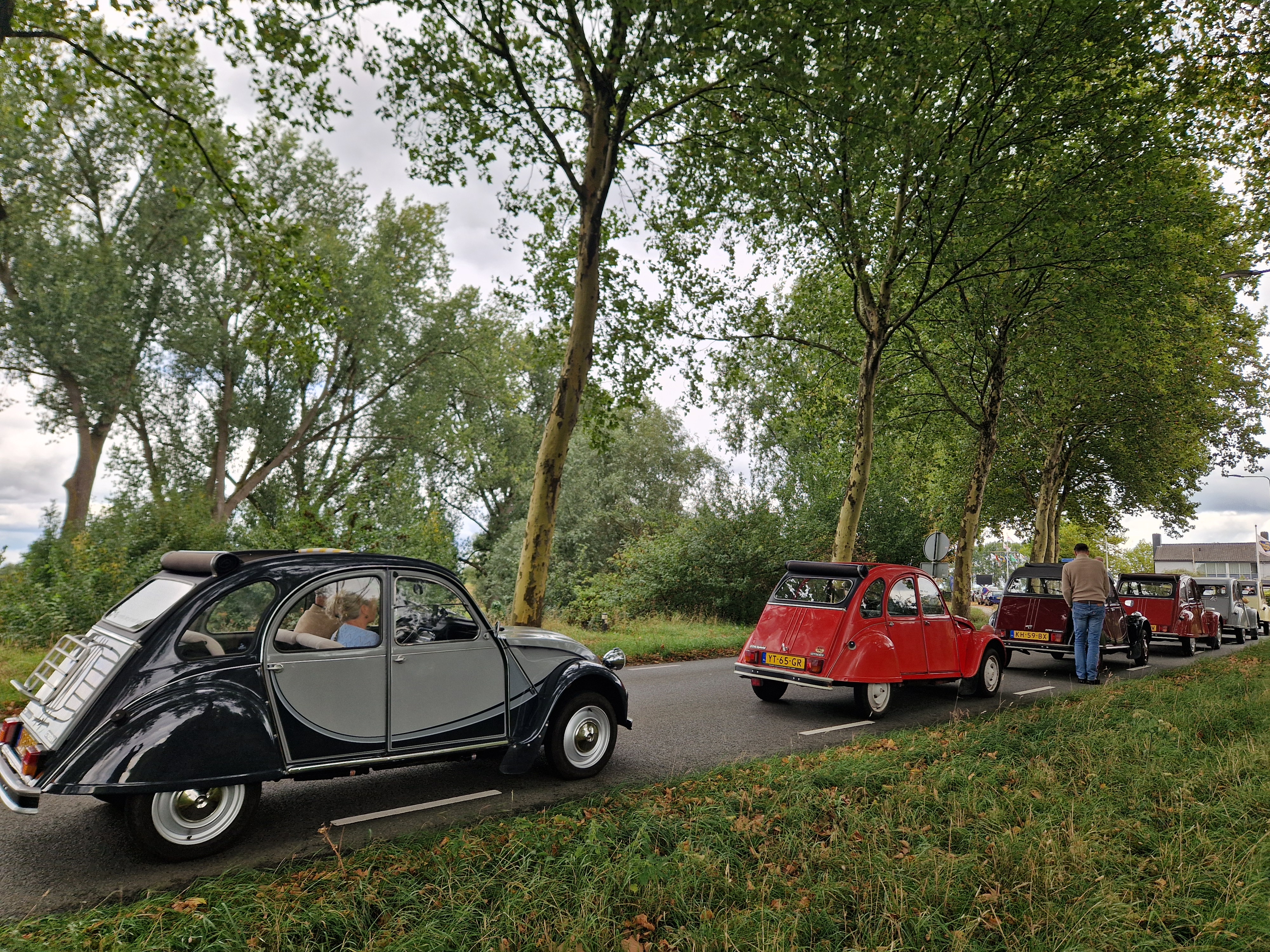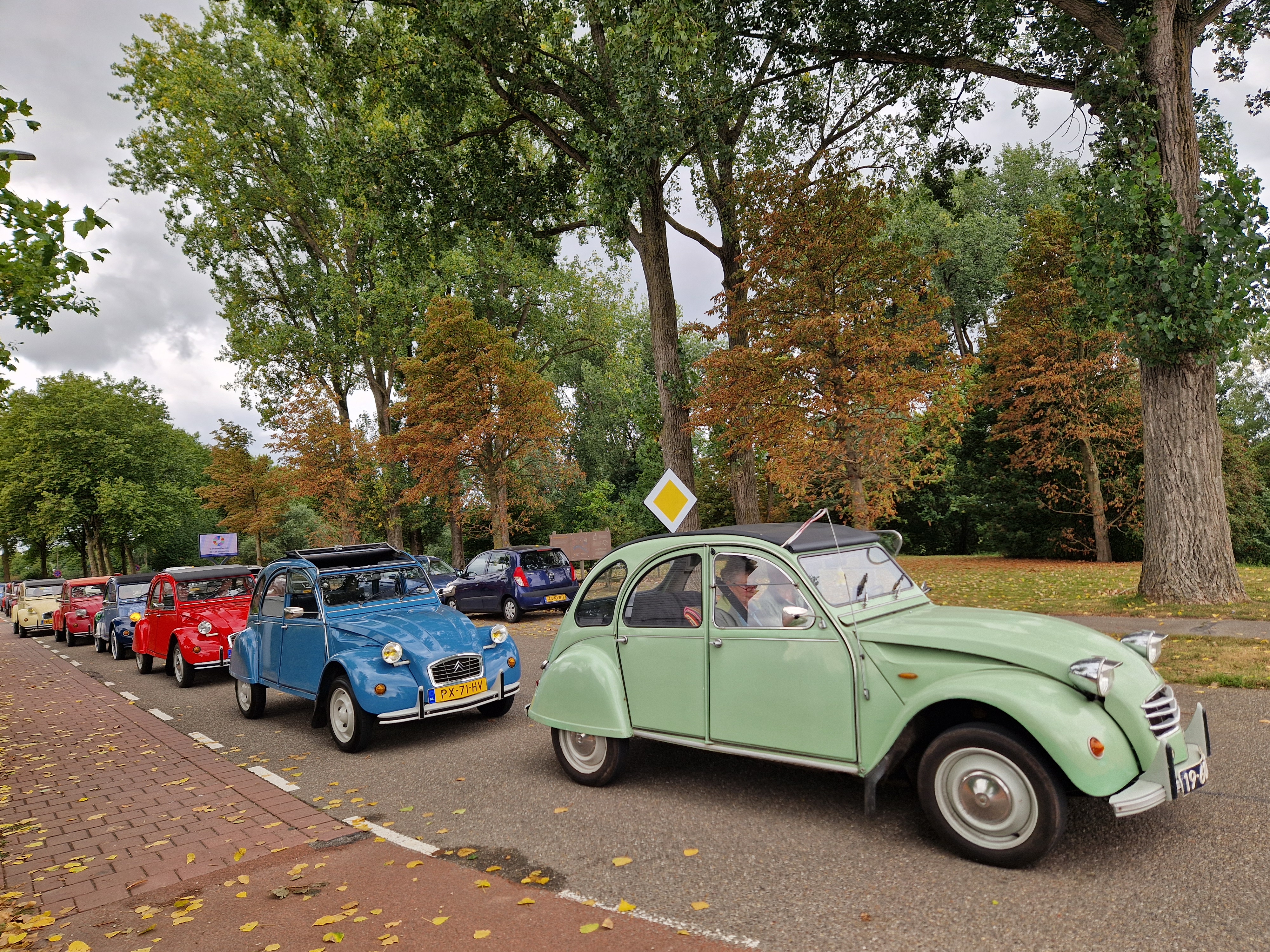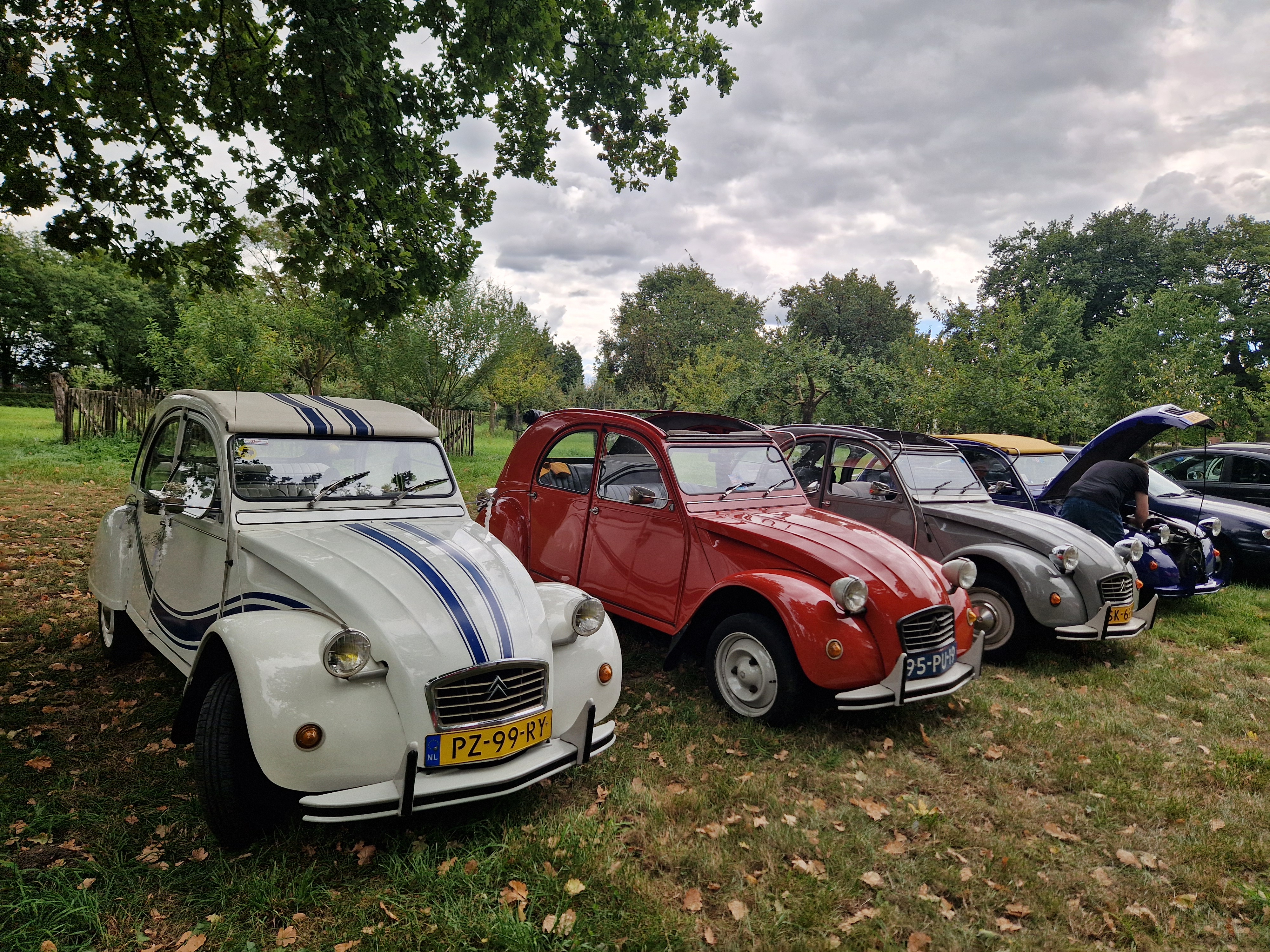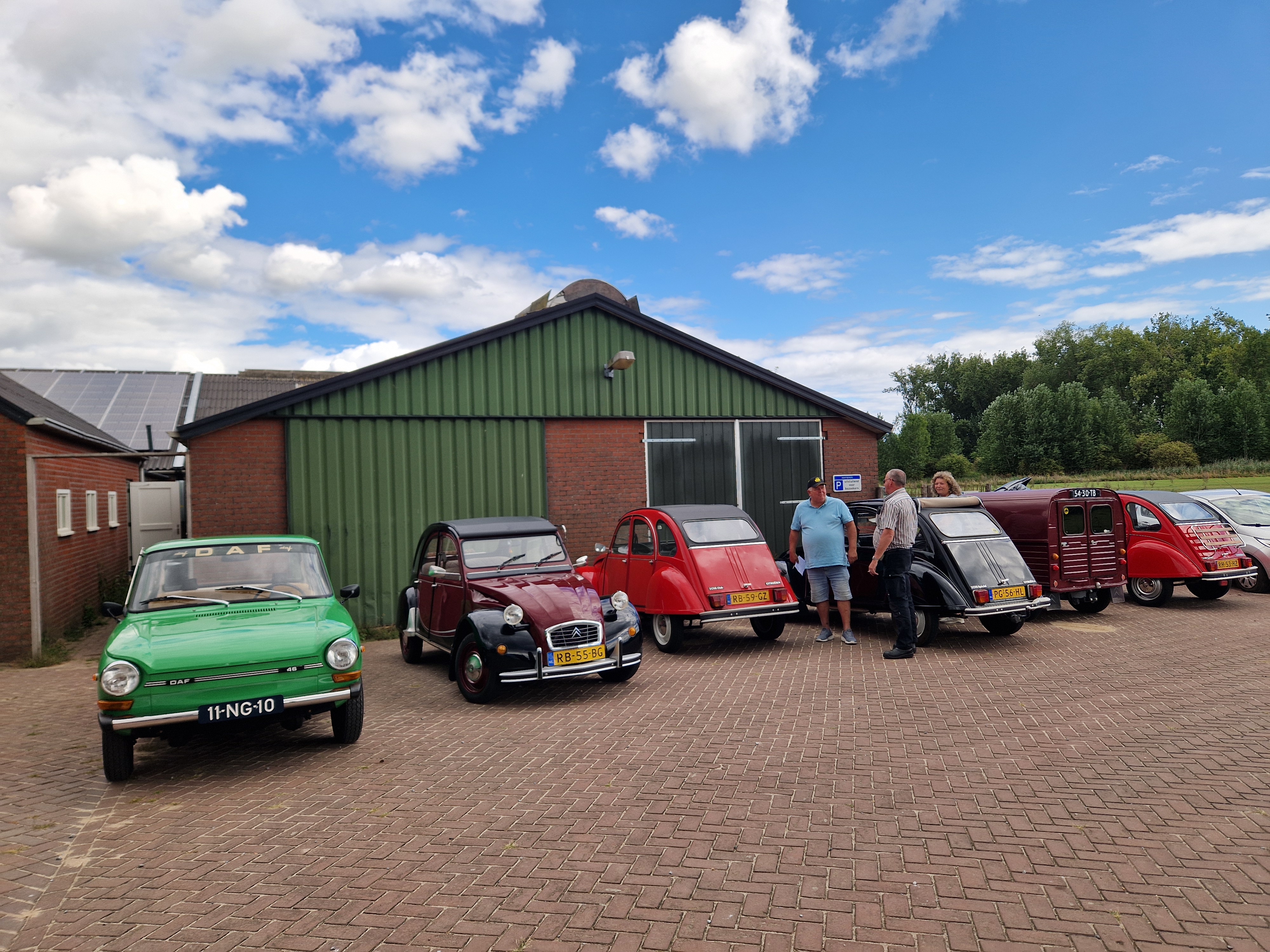 We hebben mazzel, de auto mag tijdens onze vakantie tussen de stellingen bij de Eendengarage blijven staan. En de eerste de beste vrijdagmiddag dat we thuis zijn, zetten we koers naar Wormer. Likkebaardend kijken we in de snoepwinkel van Sander Aalderink rond, wat een enige auto’s staan hier. De leukste staan buiten: de Aca en onze eigen Dyane.