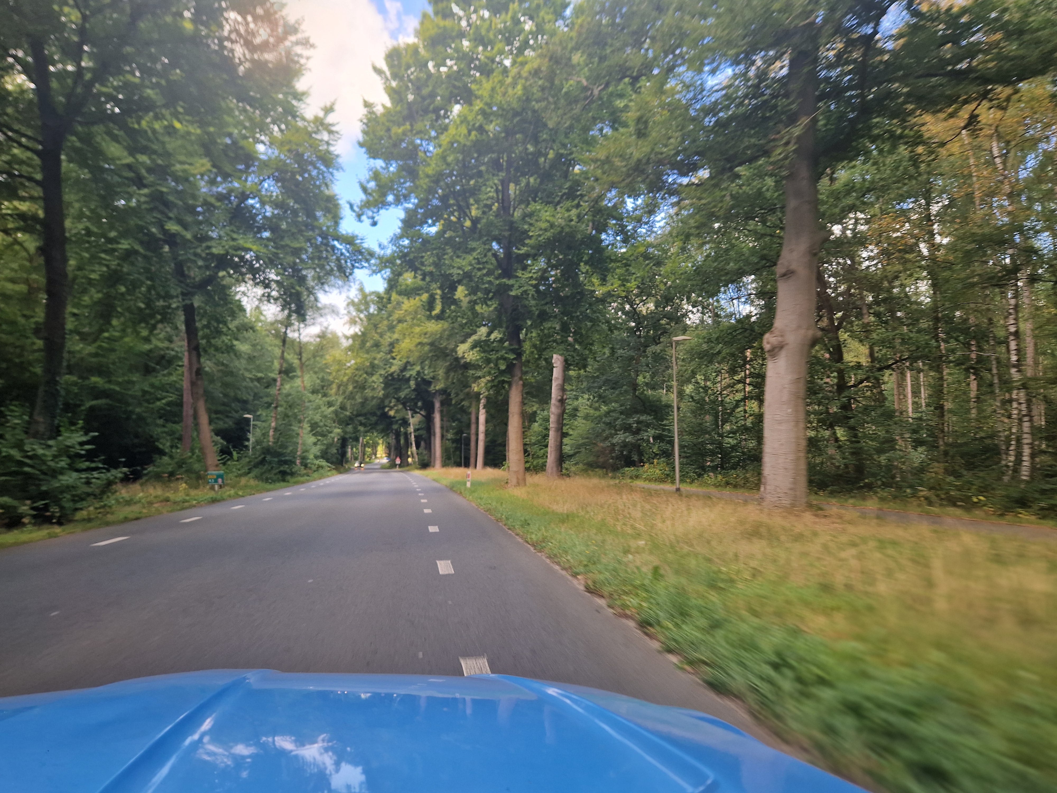Na een rondje om de auto, klep open, deurtjes open enzovoort wordt het tijd voor een proefrit. Tien neemt plaats achter het stuur, ik ernaast. Starten gaat soepel… té soepel. De grote sprong voorwaarts!